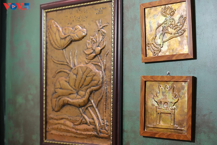 | Die Fotostudios sind nach den alten Straßen Hanois benannt. Im Foto ist der Hang Dao-Raum zu sehen. Er erinnert an die alten Gesangsräume mit Zither, roter Seggenmatte, einem Satz Schilder, Teekannen. |
