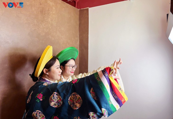 | Die Kombination aus vietnamesischen Trachten und dem Trend zur Sofortbildfotografie eröffnet durch die Kreativität der jungen Generation eine neue Richtung bei der Bewahrung und Verbreitung der vietnamesischen Kultur. |