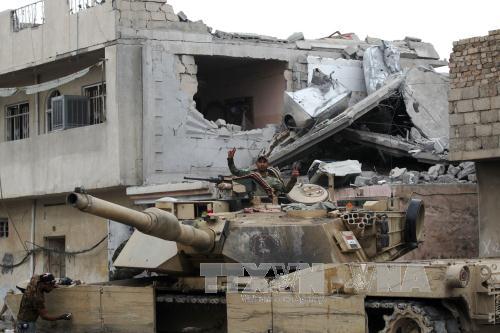 | Die irakischen Streitkräfte in der Bewegung in al-Abar nahe der Stadt Mossul am 13. April. (Foto: AFP/VNA) |