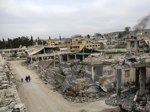 | Ein Dorf in Kobani in Syrien wurde am 27. März zerstört. (Foto: AFP/ VNA) |