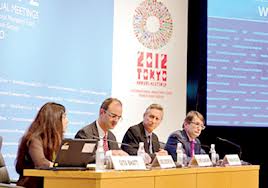 (VOVworld) – Die Jahrestagung des Währungsfonds(IWF) und der Weltbank findet derzeit in der japanischen Hauptstadt Tokio statt. Es nehmen fast 20.000 Regierungsvertreter, Notenbankchefs und Unternehmer teil. Die Teilnehmer sollen über Maßnahmen zur Beseitigung der Schuldenkrise in der Eurozone beraten. Auch Maßnahmen gegen die Senkung der globalen Wirtschaft sowie Maßnahmen zur Unterstützung der Entwicklungsländer sollen diskutiert werden. Einige Spannungen in bilateralen Beziehungen könnten allerdings Erfolge der diesmaligen Tagung beeinträchtigen.