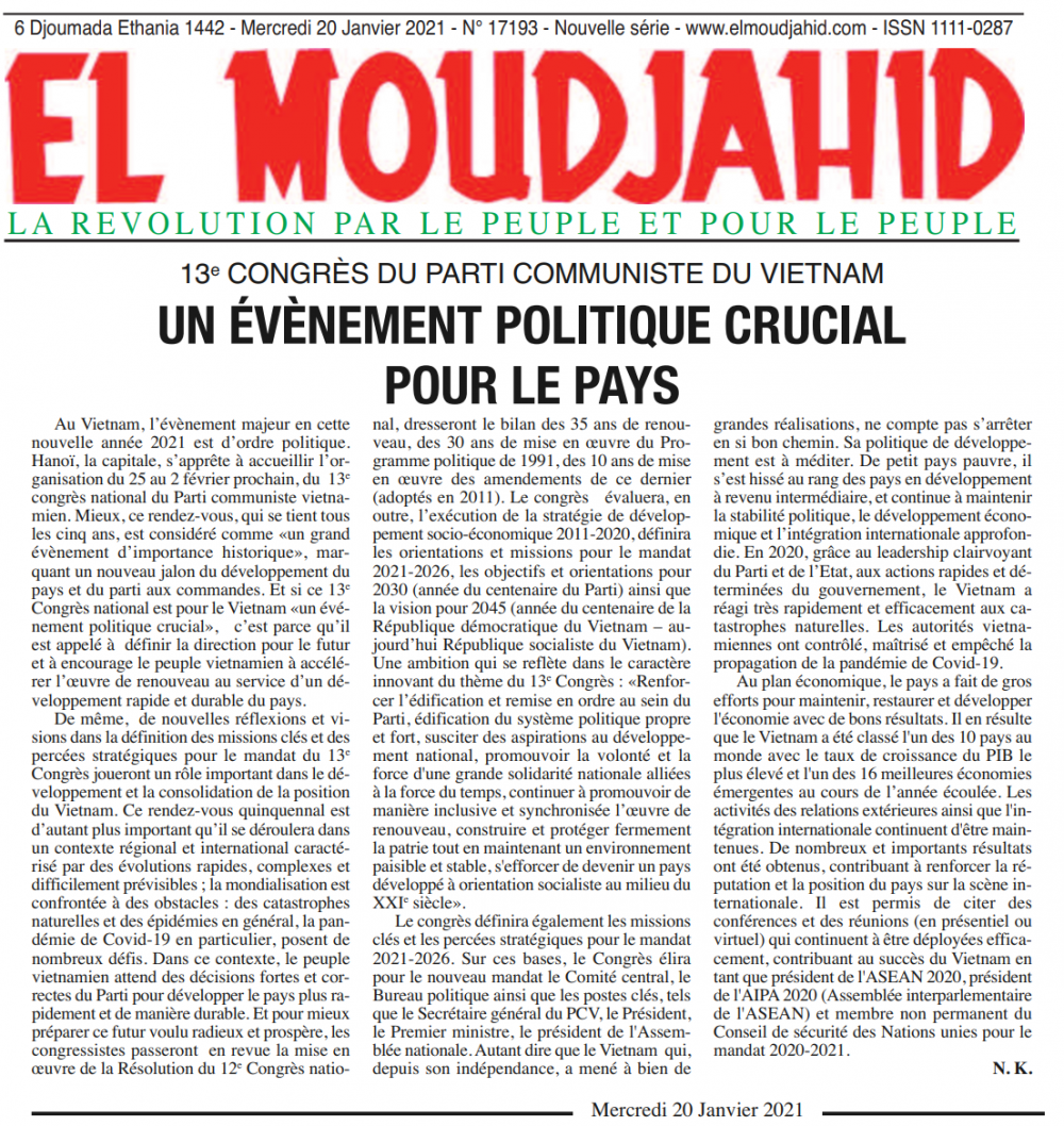 Der Artikel in der algerischen Zeitung El Moudjahid. (Foto: baoquocte.vn) |