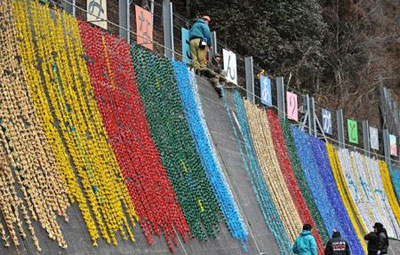 | Tausende bunte Papierkraniche für die Opfer in Miyagi. |