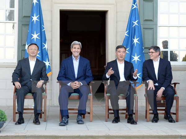 | V.l.n.r.:Der chinesische Staatsrat für Auswärtige Beziehungen Yang Jiechi, US-Außenminister John Kerry, der chinesische Vize-Premierminister Wang Yang und US-Finanzminister Jacob Lew. (Foto: VNA) |
