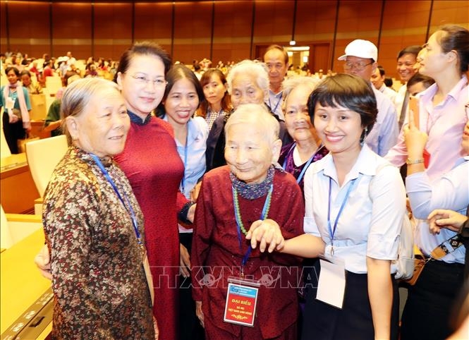 Oberst Tran The Tuyen, der Vorsitzende des Verbands zur Unterstützung der Familien gefallener Soldaten (l.), erhält Hilfe der Sponsoren. (Foto: VNA) |