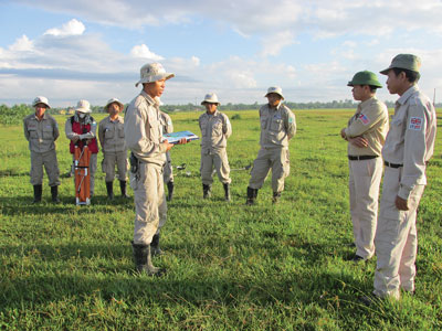 | Die Techniker der Nichtregierungsorganisationen MAG und NPA diskutieren über die Minenräumung. (Foto: landmines.org.vn) |