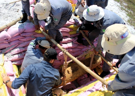 | Mitarbeiter des RENEW-Projektes bereiten auf das Entschärfen einer Bombe vor. (Foto: Ngo Xuan Hien/Project RENEW) |