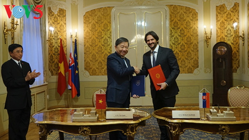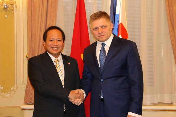 Nguyen Xuan Phuc begrüßte den Besuch der slowakischen Delegation in Vietnam und das Ergebnis des Gesprächs zwischen dem Innenminister Robert Kalinak und dem vietnamesischen Minister für die öffentliche Sicherheit, To Lam. Der Regierungschefs äußerte den Wunsch, dass beide Länder das Handelsvolumen in der Zukunft erhöhen werden. Das Handelsvolumen beider Seiten beträgt derzeit 500 Millionen US-Dollar. Er schlug der Slowakei vor, die Europäische Union zu motivieren, sobald wie möglich das Freihandelsabkommen mit Vietnam zu unterzeichnen. Robert Kalinak informierte über das Ergebnis des Gesprächs mit dem vietnamesischen Minister für öffentliche Sicherheit To Lam. Beide Seiten einigten sich auf die Verstärkung der Ausbildung des Personals. Eine Arbeitsgruppe für die Zusammenarbeit sollte gegründet werden.
