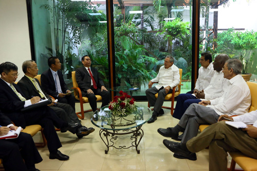 | Kubas Staatspräsident Raul Castro (r.) trifft Politbüromitglied Le Hong Anh. (Foto: baotintuc.vn) |