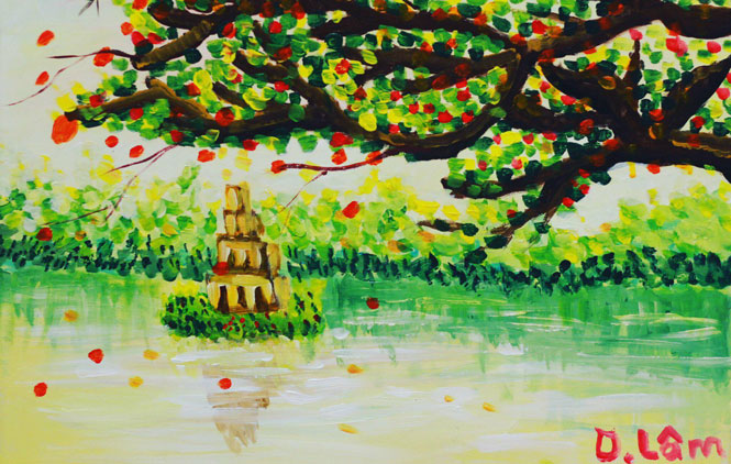 Inspiriert von Witzen sieht man in den großformatigen Werken von Quy die humorvollen Szenen. (Foto: ybox.vn) |