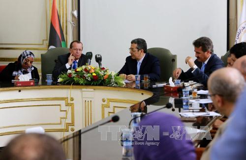 | Der libysche Premierminister Fayez al-Sarraj hält Rede auf einer Pressekonferenz in Tunis nach dem Gespräch mit Vertreter der Parteien in Libyen. (Foto: AFP/VNA) |