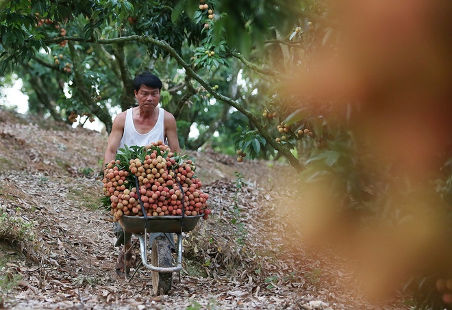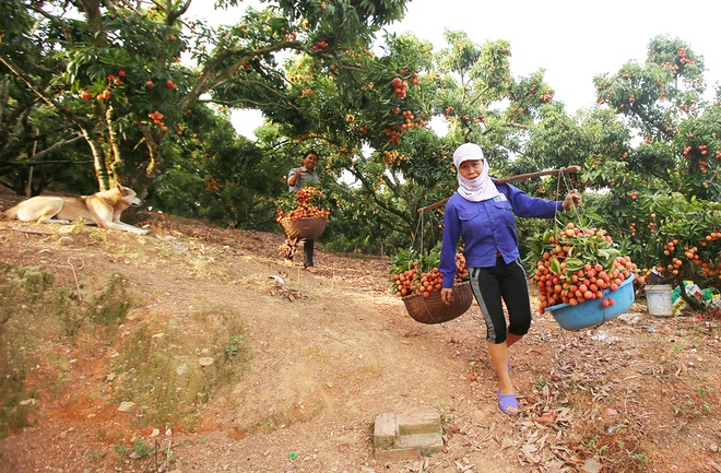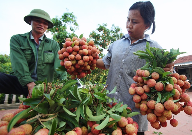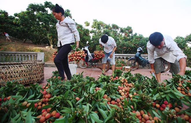 | Mitte Juni ist die Litschi-Saison im Kreis Luc Ngan in der nordvietnamesischen Provinz Bac Ninh. Dieses Jahr können Bauern vor Ort umgerechnet 70.000 Tonnen Litschi ernten. Dies entspricht einer Senkung von zehn Prozent im Vergleich zum Vorjahr. Seit Anfang Mai richten fast 1500 Großhändler Vietnams und Chinas fast 3000 Litschi-Einkauforten in Luc Ngan ein. |