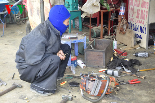 | Der Mann geht zum Markt und bringt Geräte zur Reparatur. |