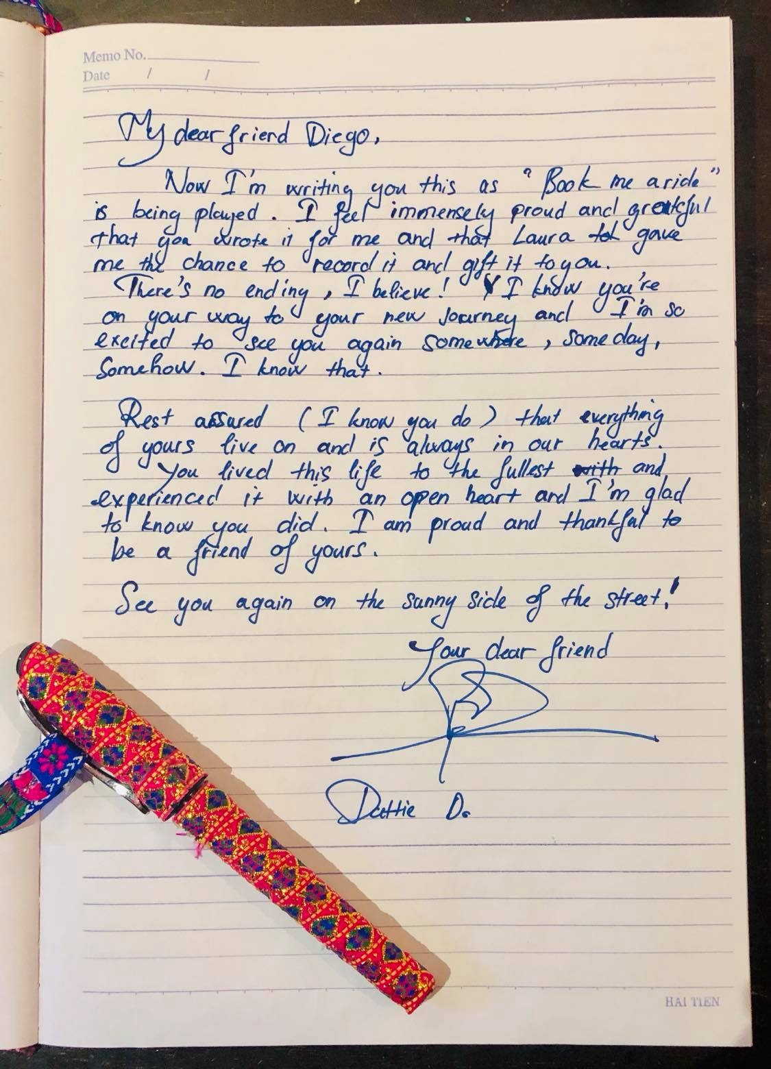 Alle Alltagsmaterialien der Vietnamesen finden in den Werken des spanischen Designers ihren Platz. Zum Beispiel das Lied “Book me a ride” – “Buchen Sie mir eine Fahrt”. In diesem Lied, das Diego selbst geschrieben hat, erscheint ein Hanoi mit dem Roten Fluss, ein Bun-Cha-Laden auf dem Bürgersteig, ein Zitronentee oder sogar ein Motorradtaxi sehr nah und liebevoll in den Texten. Es scheint, dass Diego alle Materialien des Lebens in seinen kreativen Produkten genießt und bewahrt.