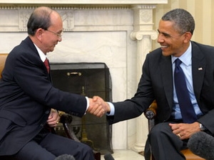| Myanmars Präsident Thein Sein trifft US-Präsident Barack Obama während seines USA-Besuches im Mai. (Foto: EPA/ tgvn.com.vn) |