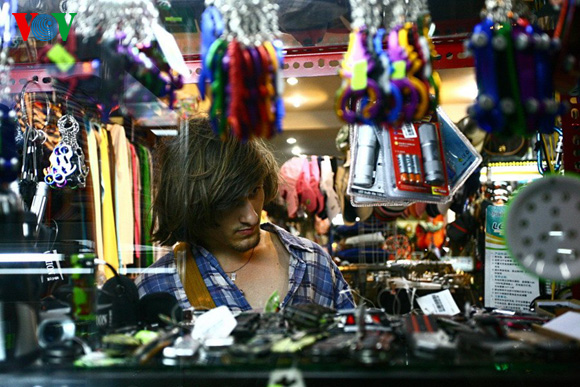| Ein Tourist besucht einen Souvenirladen in der Bui Vien-Straße. |