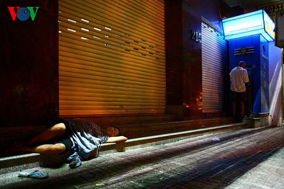 | In den lebhaften Straßen sieht man zu später Stunde auch einen traurigen Ausschnitt aus dem Leben. |
