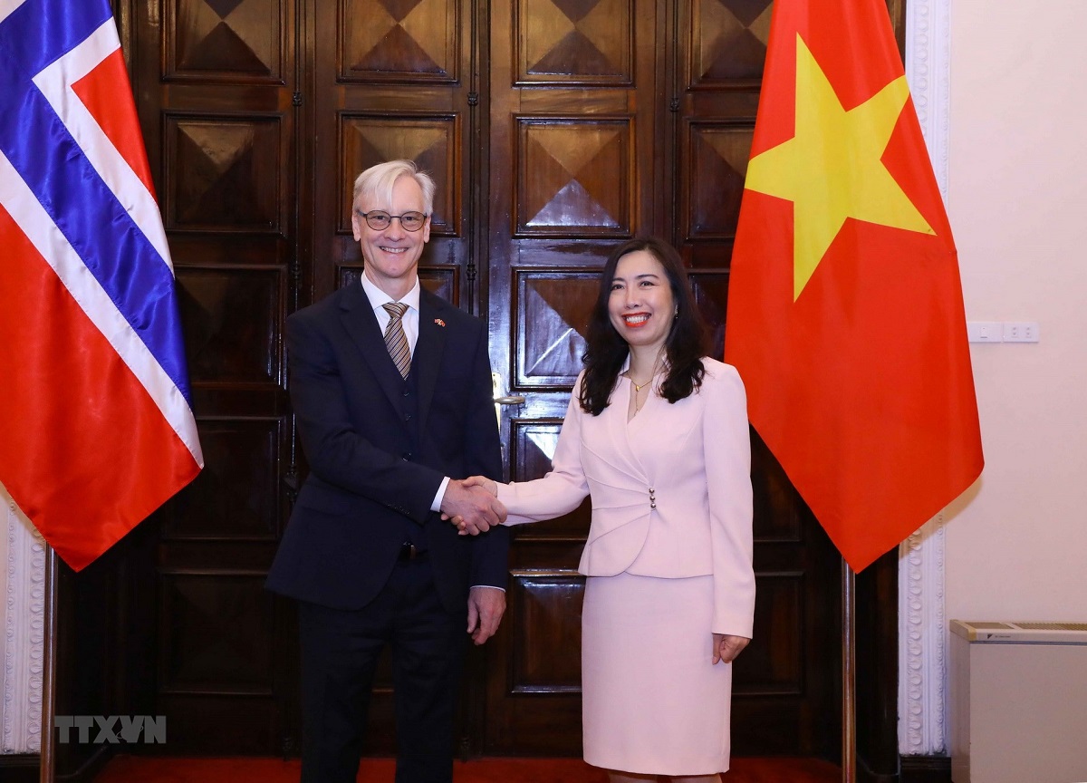 Demnach wird Vietnam Bedingungen für norwegische Unternehmen bei der Investition in Vietnam in den Bereichen erneuerbare Energie, grüne Umwandlung, Kreislaufwirtschaft, Meereswirtschaft, Schiffbau und Logistik schaffen. Das sagte Vizeaußenministerin Le Thi Thu Hang bei der 9. politischen Konsultation zwischen Vietnam und Norwegen am Mittwoch in Hanoi. Geführt wurde die Veranstaltung auch vom norwegischen Staatssekretär für Außenangelegenheiten Erling Rimestad. Die vietnamesische Vizeaußenministerin forderte Norwegen und die Europäische Freihandelsassoziation (EFTA) dazu auf, die Verhandlungen des Freihandelsabkommens mit Vietnam zu beschleunigen. Sie hoffe, dass Norwegen die vietnamesischen Schiffbesatzungsmitglieder dabei unterstützen werde, auf Schiffen unter norwegischer Flagge zu arbeiten.