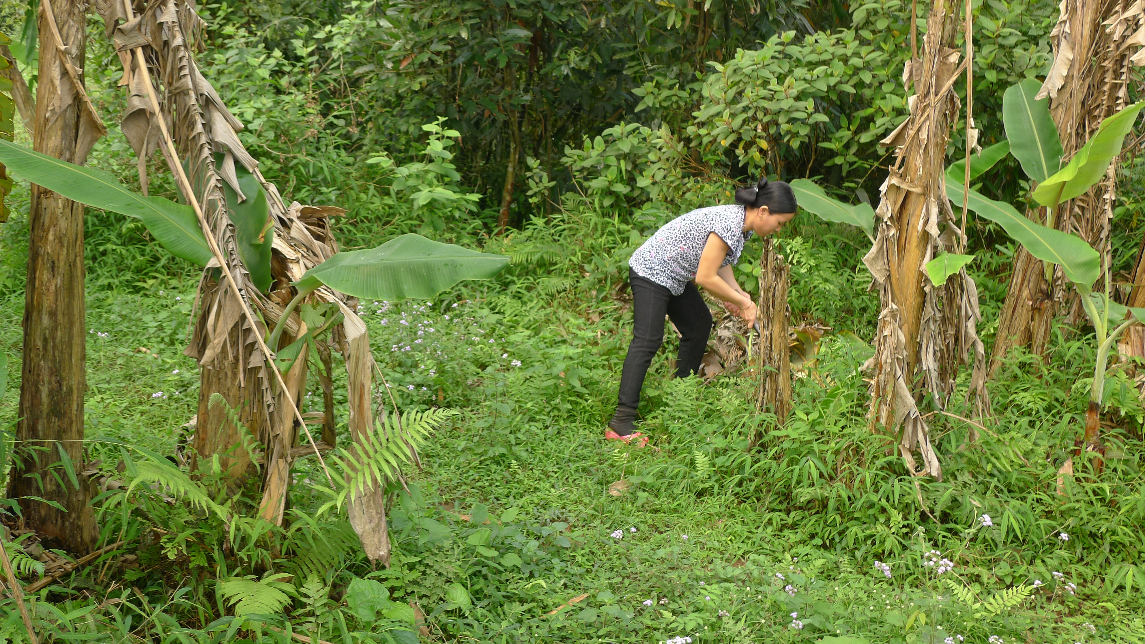 “Wildschweine fressen Maniok, geschnittene Bananabäume und Süßkatoffelblätter. Weiße Schweine fressen auch Kleie, deshalb wachsen sie schneller als Wildschweine. Wenn Wildschweine fressen nicht, müssen wir sie impfen.”