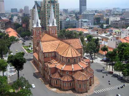 Die Notre-Dame-Kathedrale befindet sich auf dem Platz Cong Xa Paris, auf Deutsch, Platz der Pariser Kommune, im ersten Bezirk in Ho Chi Minh Stadt. Sie ist auch bekannt als die Basilika der Unbefleckten Empfängnis. Gerade nachdem die Franzosen Saigon, was heute Ho Chi Minh Stadt heißt, erobert hatten, bauten sie diese Kathedrale, um einen Ort für Gottesdienste zu haben. Das war im Jahre 1877. Deshalb hat die Notre-Dame-Kathedrale eine ganze klassische europäische Architektur. Architekt Nguyen Huu Thai, der über die französische Einrichtungen in Ho Chi Minh Stadt forscht, sagte, die französische Architektur in Ho Chi Minh Stadt habe verschiedene Phasen und die Notre-Dame-Kathedrale wurde in der ersten Phase gebaut.