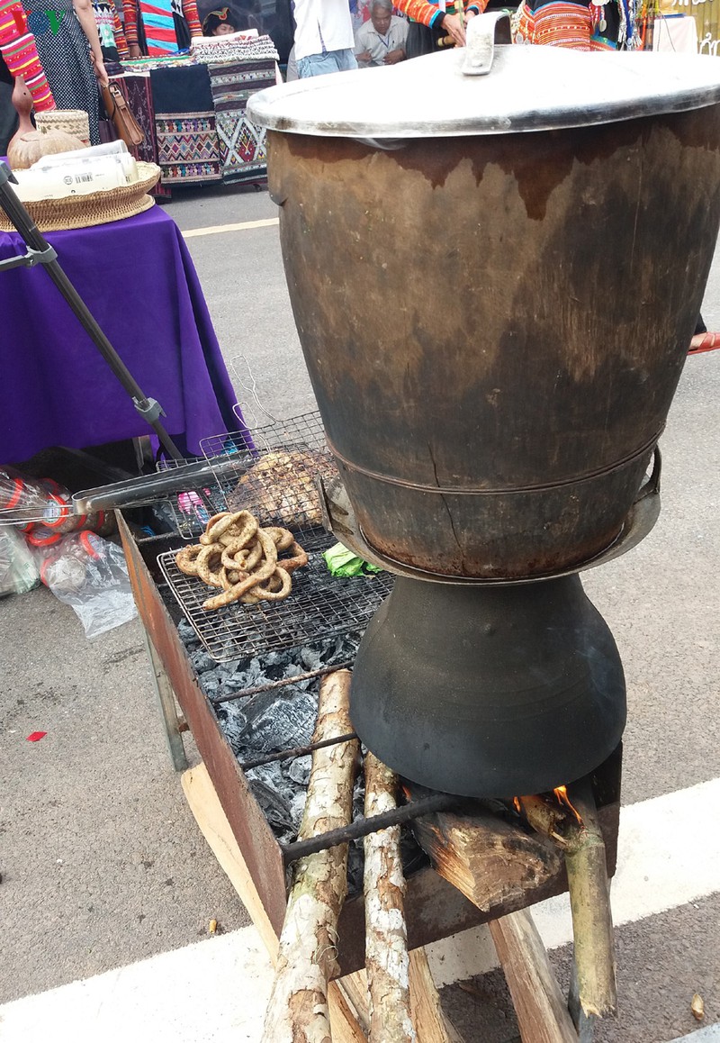 Nachdem der Fisch vollständig mariniert ist, benutzt man einen frischen Bambusstock, der gespalten wurde, klemmt den Fisch in der Mitte ein und grillt ihn. Beim Grillen muss man den Fisch so drehen, dass er gleichmäßig gekocht ist. “Pa pinh top” kann mit gekochtem Klebreis zubereitet werden. Nguyen Lan Phuong, eine Touristin aus Hanoi, mag das Gericht sehr: