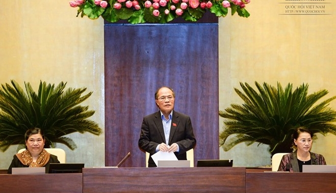 (VOVworld) – Die Abgeordneten haben am Mittwoch über das Gesetzgebungsverfahren sowie Personalfragen des Nationalen Wahlrates und die Wahl des Parlamentsgeneralsekretärs diskutiert. Das Parlament verabschiedete die geänderte Zivilprozessordnung, die geänderte Strafprozessordnung und das geänderte vietnamesische maritime Gesetzbuch. Es billigte außerdem die geänderte Verwaltungsprozessordnung, das Gesetz über vorläufige Festnahmen und Untersuchungshaft, das Referendumsgesetz und das Gesetz über Gebühren und Beiträge. Parlamentspräsident Nguyen Sinh Hung wurde am Dienstag mit Mehrheit zum Vorsitzenden des Nationalen Wahlrates gewählt. Das Parlament wird nach Vorschlag des Vorsitzenden des Wahlrates über dessen Stellvertreter sowie die Mitglieder des Nationalen Wahlrates abstimmen. Der Generalsekretär des Parlaments der 13. Legislaturperiode wird gewählt. Über den Wahltermin für die Legislaturperiode 2016 bis 2021 wird abgestimmt.