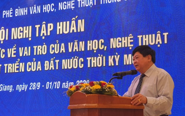 Der Vorsitzende der Union der vietnamesischen Verbände für Literatur und Kunst Huu Thinh (2.v.l.) überreicht den A-Preis an Autoren. (Foto: Hoang Hieu/ VNA) |