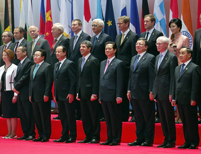 (VOVworld) - Das Asien-Europa-Gipfeltreffen (ASEM) ist im Kongresszentrum in der laotischen Hauptstadt Vientiane eröffnet worden. Der vietnamesische Premierminister Nguyen Tan Dung und die Regierungschefs anderer Mitgliedsländer haben über die Anstrengungen diskutiert, um die Wirtschaft anzukurbeln, den Frieden zu stabilisieren, die Zusammenarbeit und die Entwicklung von ASEM-Ländern zu fördern.