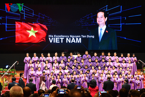 | Premierminister Nguyen Tan Dung wurde bei dem Gipfeltreffen begrüßt. |