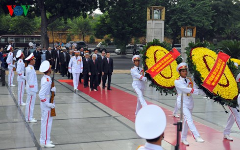 (VOVworld) – Am Freitag hat Premierminister Nguyen Xuan Phuc an der Feier zum 40. Jahrestag des Verwaltungsstabs für das Ho Chi Minh-Mausoleum teilgenommen. Er lobte die dortigen Offiziere, Soldaten und Mitarbeiter für ihre Arbeit in den vergangenen 40 Jahren. Sie haben sich Mühe gegeben, um ihre Aufgaben gut zu erfüllen. Aus diesem Anlass bedankte sich der Premierminister bei der ehemaligen Sowjetunion und der heutigen russischen Regierung für die Hilfe bei der Bewahrung des Leichnams Ho Chi Minhs.