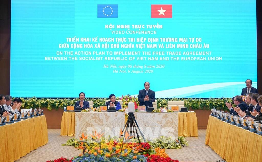 Onlinekonferenz zur Umsetzung von EVFTA. (Foto: Thuy Hien/Bnews/VNA) |