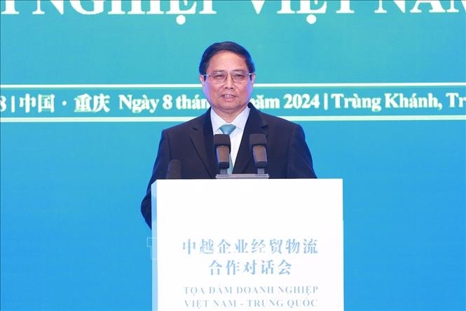 Er würdigte die strategische Lage und die Rolle des Zentrums bei der Verbindung des Handels. Dabei äußerte er den Wunsch, dass China die Verbindungen mit Vietnam sowohl auf Straßen, auf Wasserwegen als auch auf der Schiene, insbesondere der internationalen Eisenbahnlinie von Vietnam über Chongqing in China nach Zentralasien und Europa weiter ausbauen wird. Der Premierminister schlug China außerdem vor, eng mit vietnamesischen Partnern bei der Entwicklung von Logistikdienstleistungen zusammenzuarbeiten, um den vietnamesischen Waren einen besseren Zugang zum chinesischen Markt zu ermöglichen und den Export vietnamesischer Waren in Drittländer zu fördern, insbesondere in den Nahen Osten und nach Europa. Er hoffe auch, dass China finanzielle Unterstützung leistet und Vietnam dabei hilft, Logistikzentren zu entwickeln.