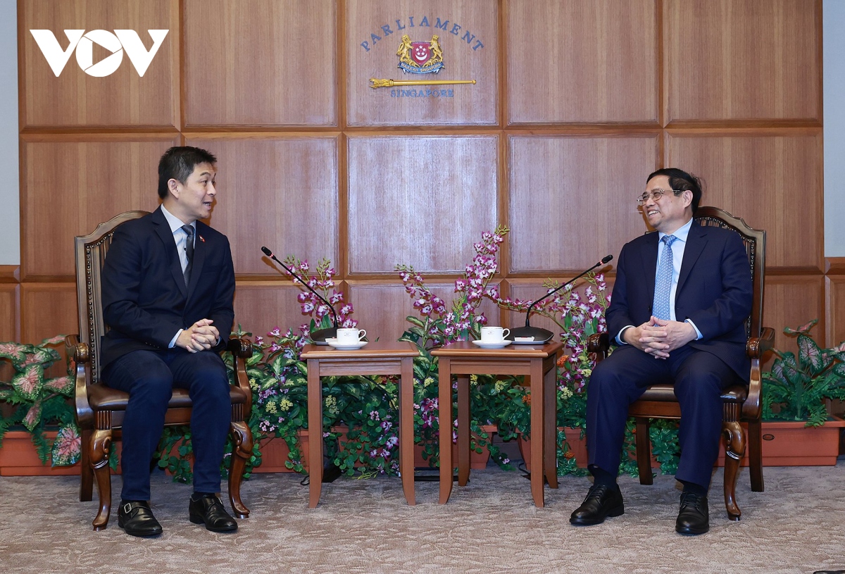 Premierminister Pham Minh Chinh hielt Rede beim Vietnam-Singapur-Unternehmensforum. (Foto: VOV) |