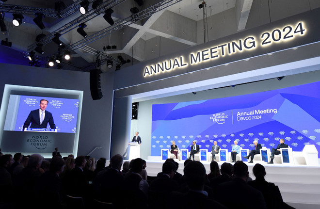 Premierminister Pham Minh Chinh beim Dialog zwischen Vietnam und WEF in Davos. (Foto: VNA) |