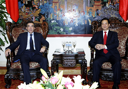 | Premierminister Nguyen Tan Dung (r.) empfing den damaligen französischen Premierminister François Fillon zu seinem Vietnambesuch im November 2009. |