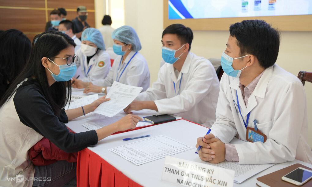 Professor Do Quyet, der Direktor der Militärmedizin-Akademie, gab bekannt, dass diese drei Probanden vor 28 Tagen bereits die erste Dosis von 25 Mikrogramm des Impfstoffs Nanocovax bekommen haben.