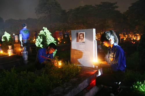 | Jugendliche der Hauptstadt Hanoi zünden Kerzen zu Ehren gefallener Soldaten an. (Foto: Vuong Duc/tuoitrethudo.vn) |