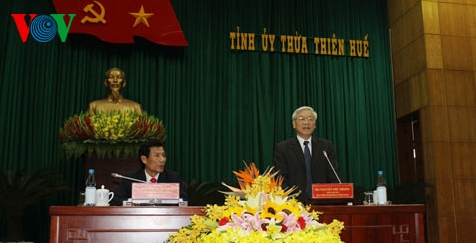 | Vizepremierminister Vuong Dinh Hue bei der Tagung mit den Leitern der Provinz Thua Thien Hue. (Foto: daidoanket.vn) |