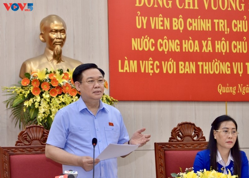 Parlamentspräsident Vuong Dinh Hue hielt Rede bei der Tagung in Quang Ngai. (Foto: VOV) |