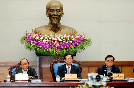 | Premierminister Nguyen Tan Dung (M.) leitet die Regierungssitzung am Freitag. (Foto: Chinhphu.vn) |