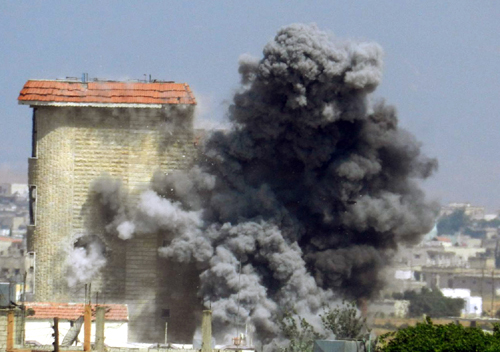 | Ein Schwarzer Rauch von einem Gebäude bei Zusammenstößen zwischen den Regierungstruppen und der Opposition in Syrien in der Stadt Homs am 2. Juni. (AFP/VNA) |