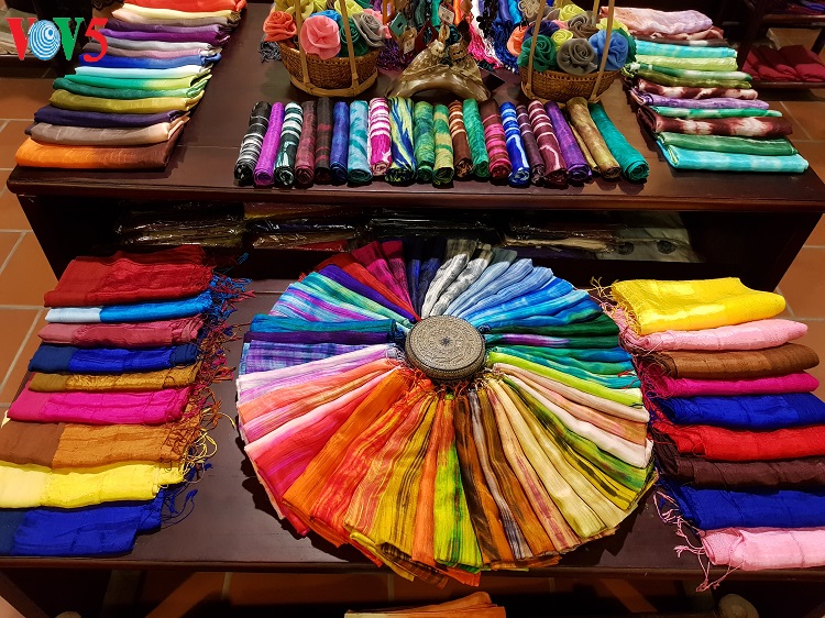 „Unsere Stoffe werden aus Seide oder Baumwolle gewebt. Es hängt von den Bestellungen der Kunden ab. Mit unseren Geweben kann man Kleidung, Decken, Schals und Tischdecken schneidern lassen. Wir stellen auch neue Produkte aus dem traditionellen Stoff her, wie Rucksäcke, Taschen und Geldbeutel.“