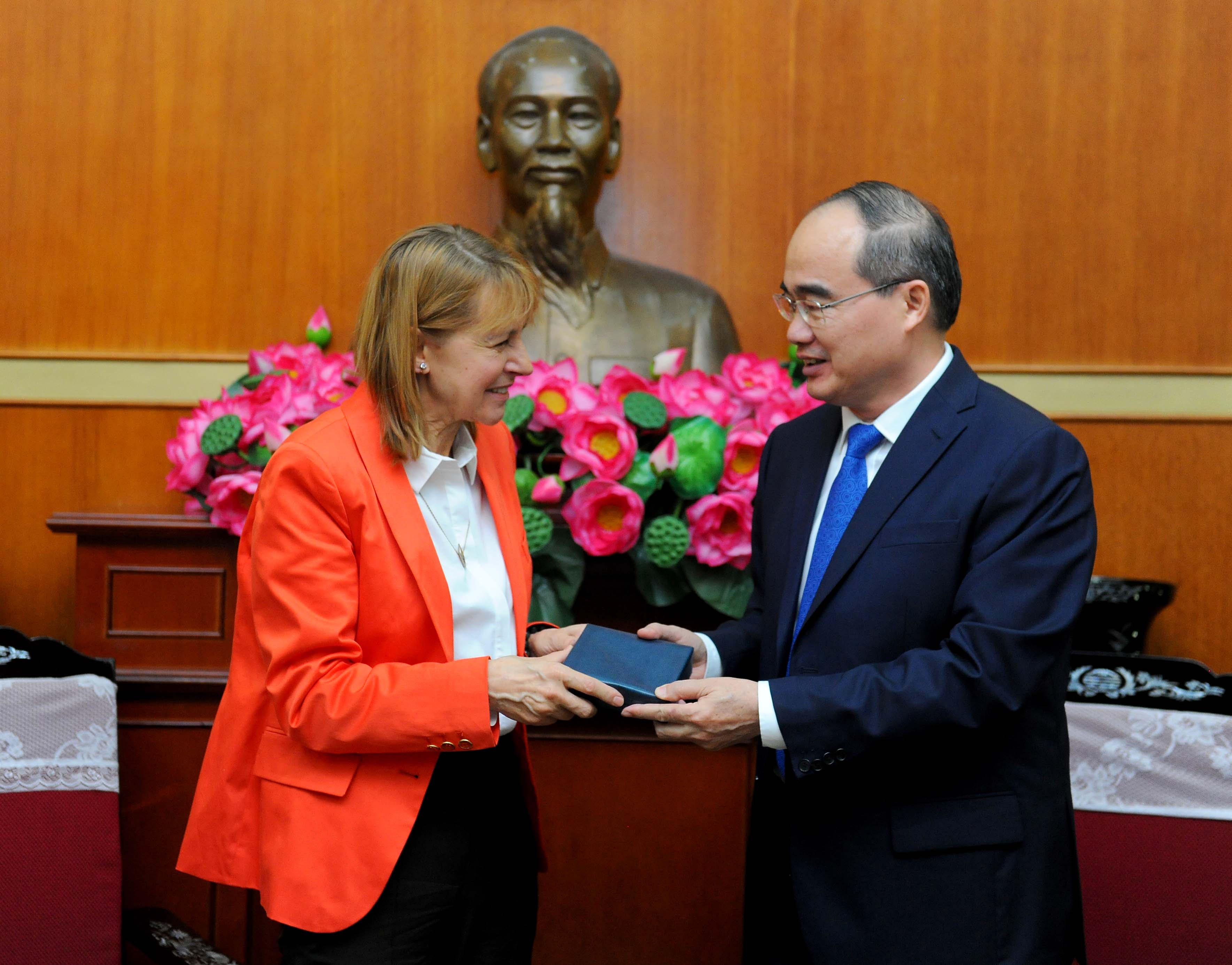 | Vorsitzende der vaterländischen Front Vietnams Nguyen Thien Nhan auf der Sitzung. |