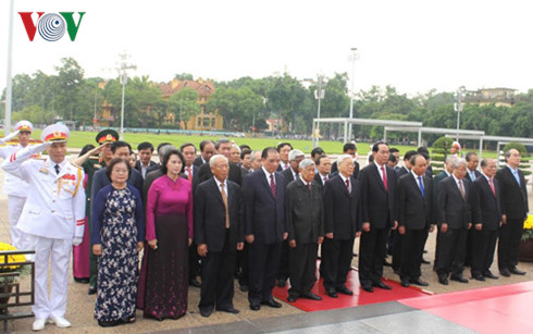 | Delegationen der Partei, des Staates, des Parlament, der Regierung und der Vaterländischen Front Vietnams beim Besuch in Ho Chi Minh-Mausoleum. |