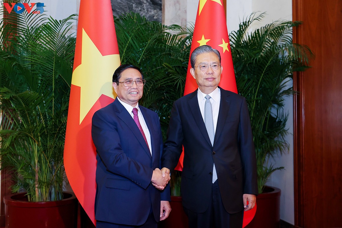 Dies sagte Premierminister Pham Minh Chinh bei einem Gespräch mit dem chinesischen Staatspräsidenten Xi Jinping am Dienstag in Peking. Pham Minh Chinh betonte, Vietnam unterstütze stets die Ein-China-Politik und schenke der globalen Initiativen Chinas große Aufmerksamkeit. Er schlug beiden Seiten vor, die Qualität der Zusammenarbeit in allen Bereichen, besonders in Wirtschaft, Handel und Investitionen, zu verbessern. China sollte den Markt für vietnamesische Agrarprodukte stärker öffnen und die Eisenbahn mit Hochgeschwindigkeit zwischen beiden Ländern entwickeln. Vietnam begrüße chinesische Unternehmen, ihre hochwertigen Investitionen in Vietnam zu intensivieren.