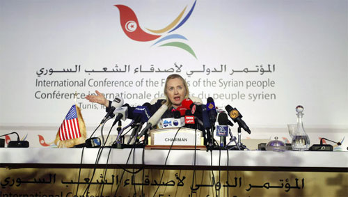 US-Außenministerin Hillary Clinton hält eine Rede beim Treffen der "Freunde Syriens".