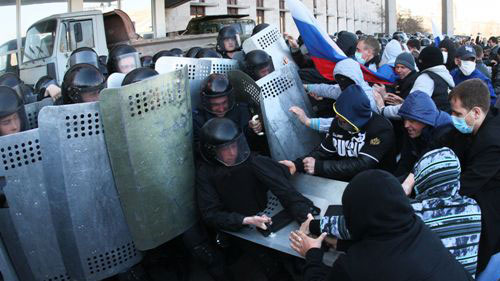 | Zusammenstöße zwischen Demonstranten und Polizisten im ostukrainischen Donezk. (Foto: AFP/VOVOnline) |