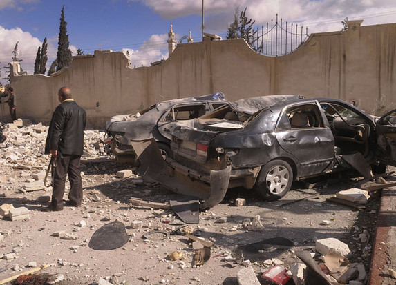 | Ein Auto wurde durch Bombenanschläge in Aleppo zerstört. (Foto: reu) |