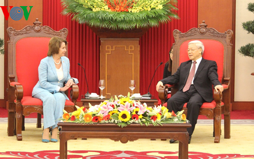 (VOVworld) – Die USA legen großen Wert auf die Intensivierung der Zusammenarbeit mit Vietnam, darunter im Bereich Verteidigung. Dies sagte der US-Botschafter in Vietnam, Ted Osius bei einem Treffen mit dem vietnamesischen Vize-Verteidigungsminister Nguyen Chi Vinh am Freitag in Hanoi. Osius zufolge haben die USA Pläne aufgestellt, um Vietnam bei der Entseuchung der mit Dioxin-vergifteten Gebiete und bei der Minenräumung zu unterstützen. Zuvor hatte Nguyen Chi Vinh den Vorsitzenden der Kommission für die asiatisch-pazifische Region des US-Repräsentantenhauses, Matt Salmon und eine Delegation aud der nationalen Verteidigungsuniversität der USA getroffen.