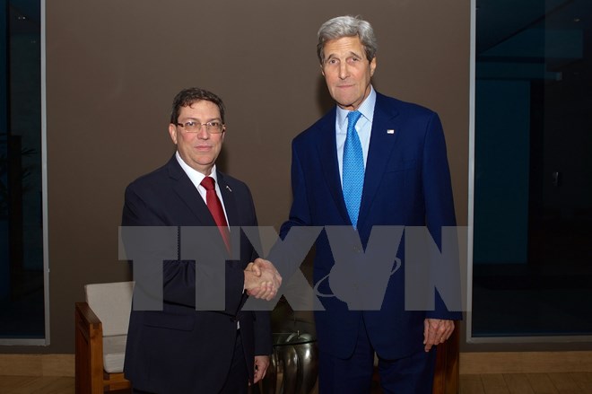 | US-Außenminister John Kerry (r.) und sein kubanische Amtskollegen Bruno Rodriguez. (Foto: AFP/VNA) |
